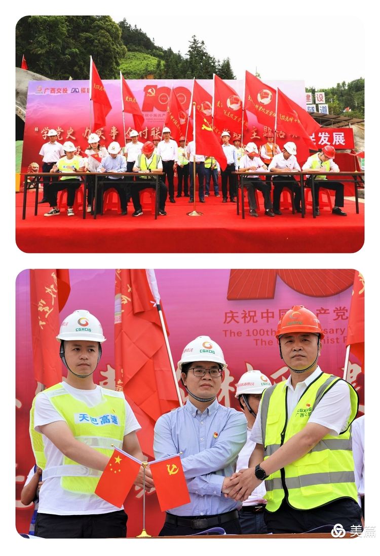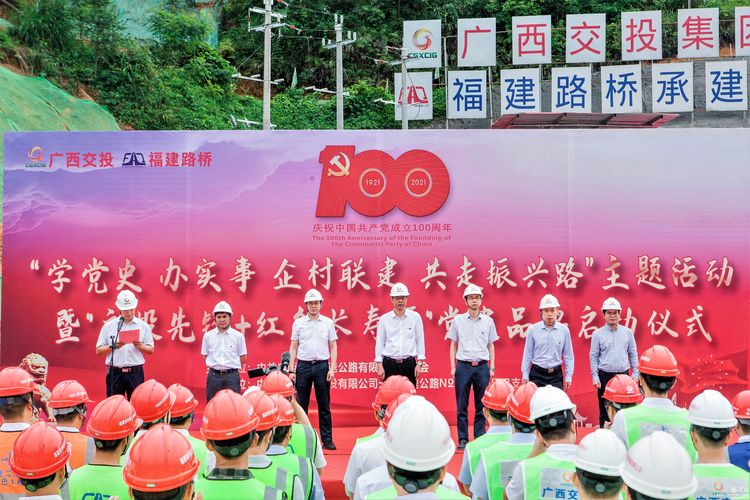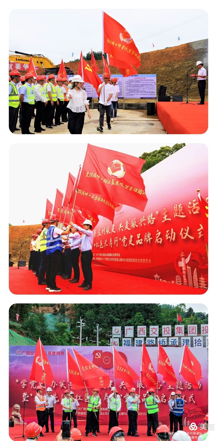 5月8日,福建路橋天巴高速№3合同段拾貳坡隧道現(xiàn)場黨旗飄揚,天巴路指揮部全體黨員干部、各總監(jiān)辦、各項目經(jīng)理部及鳳山縣長洲鎮(zhèn)機關黨支部、東蘭縣金谷鄉(xiāng)納立村黨支部共同參加了“學黨史 辦實事 企村聯(lián)建 共走振興路”主題活動暨“交投先鋒+紅色長壽行”黨建品牌啟動儀式,正式開啟村企聯(lián)建促發(fā)展的序幕。 |